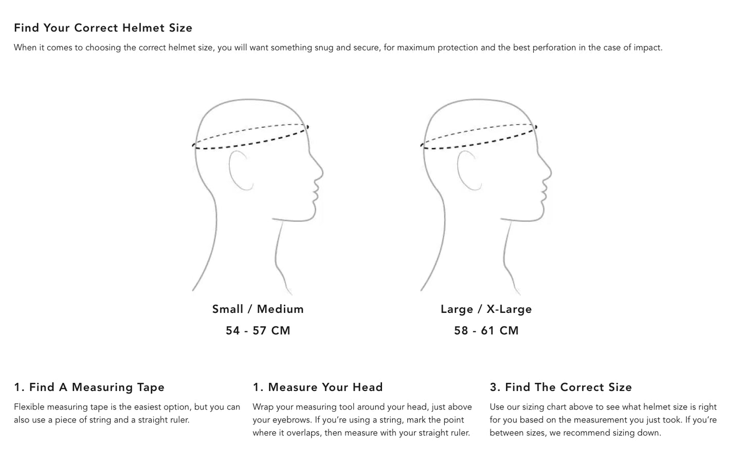 Use our sizing chart above to see what helmet size is right for you based on the measurement you just took. If you're between sizes, we recommend sizing down.